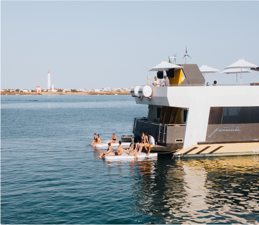 Yellow Team Animaris - Our team is easy to spot as you'll find our friendly staff always dressed in yellow shirts. They will guide you every step of the way to ensure that your family or group has a pleasant and unforgettable experience. Our qualified skippers meet all the legal safety requirements for the transportation sector. The Animaris team is multicultural and multilingual, as all members speak English and Portuguese, and some also speak French, German, and Spanish.